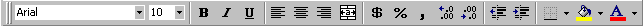 Normally, at top of the spreadsheet screen you will find buttons for common functions. Related buttons are grouped into sets called toolbars. For example, the toolbar in Figure 1 above shows the toolbar for common formatting commands.